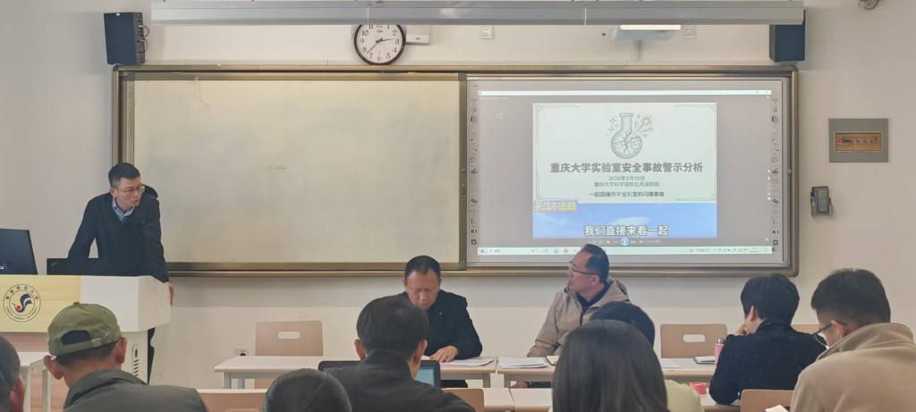 会上,集中观看了《重庆大学实验安全事故警示分析》警示教育片。惨痛的事故教训以及深刻的事故原因剖析,给在场每一位教职工敲响了安全警钟。随后,陈哲副院长传达了《青海师范大学关于深刻汲取重庆大学实验室安全事故教训全面开展校园安全隐患排查整治暨强化安全管理工作的紧急通知》文件精神,并结合学院实验室工作实际,深入阐释了《青海师范大学实验室安全分级分类管理办法》,明确了实验室的安全管理标准和责任分工。