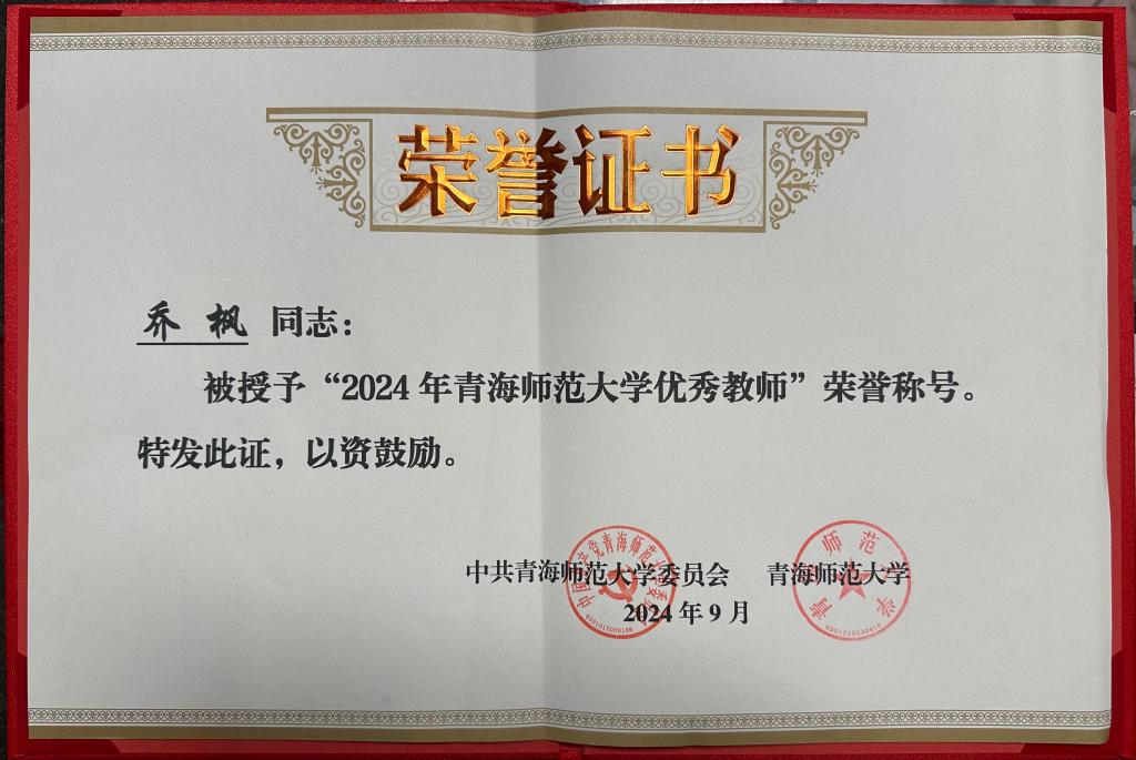 乔枫,女,1973年11月,内蒙古武川县人,南京农业大学生物化学与分子生物学博士,现为青海师范大学生命科学学院教授,博士生导师。2020年被评为青海师范大学“师德标兵”。2024年被授予青海师范大学“优秀教师”荣誉称号。